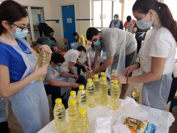 عمل الفريق كخليّة نحل، حيث بدأوا بجمع التبرّعات التي قام متعلّمو المدرستين وذووهم ومعلّموهم بتقديمها إضافة إلى دعم المجتمع المحلّي وبذلك استطاعوا توضيب خمسين حصة غذائية احتوت على أكثر من ١٦ صنف.
