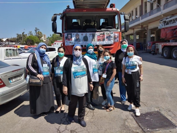 ويوم الجمعة في ٢١ آب انطلقت الحملة مع الفريق التّطوّعي وبصُحبة مديرة مدرسة الدّوحة الأستاذة هنا جمعة وكانت وجهتهم مركز "تجمّع المؤسّسات الأهلية" المؤقت في منطقة الكرنتينا بالقرب من فوج إطفاء بيروت، حيث تم توزيع الحصص الغذائية على عائلات فوج حرس بيروت، وكان لهم وقفة تضامُنيّة مع فوج إطفائية بيروت، حيث توجّهت مديرة دوحة المقاصد بواجب العزاء لرئيس فوج اطفاء بيروت الملازم أول "جورج كاشي" قائلة: "نحن كتربويين في المدارس ما عاد رؤساؤنا قدوة لنا، بل أنتم يارجال الوطن أصبحتم القدوة التي نحتذي بها يبقى لعطاءاتكم الأثر الذي لايمكن الا أن ننحني إجلالًا لها، هذا وأضافت أنّه في مدارسنا لم يعد أمام تضحياتكم كتب ندرّس بها، بل صار لدينا العديد من القصص والدروس التي عملتم على تقديمها بالدم ليحيا وطننا لبنان ونستطيع ان ننهل منها ما يكفي من الدروس والعبر...".