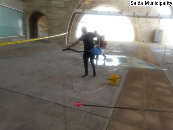 على صعيد آخر مواز للتدابير المتخذة ، قامت فرق الطوارىء البلدية بتعقيم ورش مكان وأرض المركز (الكائن في أرضية المظلات الشمسية في المدينة الرياضية) كتدبير إحترازي بعد إنتهاء إجراء الفحوصات.