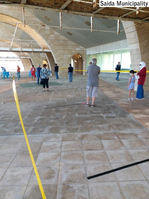 كما وتقوم شرطة بلدية صيدا بالتواجد والسهر على تنظيم دخول المواطنين لإجراء الفحوصات عبر مسارات منظمة ومنعا للإزدحام .