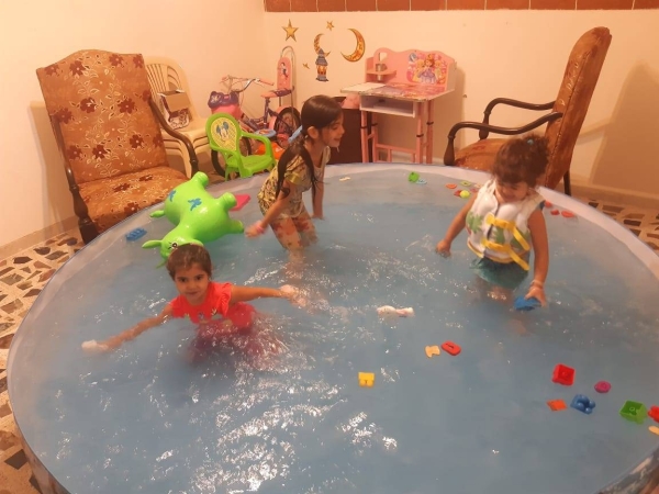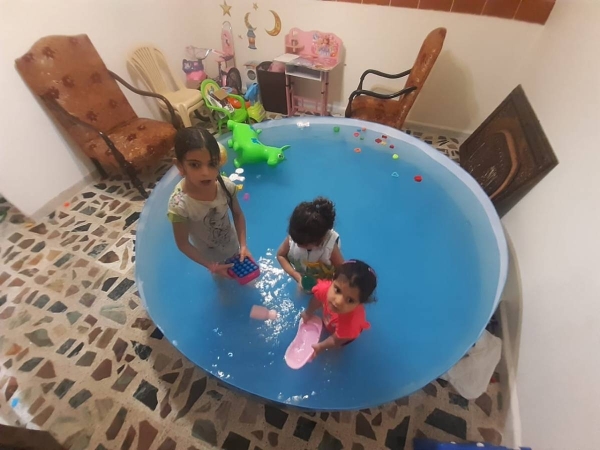 في ظل الطقس اللاهب بحرارته التي سجلت حتى الآن اعلى معدلاتها لهذا العام ، وفي ظل استمرار خطر تفشي فيروس كورونا ، حولت عائلة جنوبية في منطقة اقليم التفاح غرفة الجلوس داخل منزلها الى مسبح لأطفالها حفاظاً على سلامتهم وللتخفيف من وطاة حرارة الصيف عليهم ، بعدما قامت بشراء بركة صغيرة ووضعتها مكان بعض اثاث الغرفة .