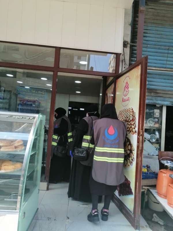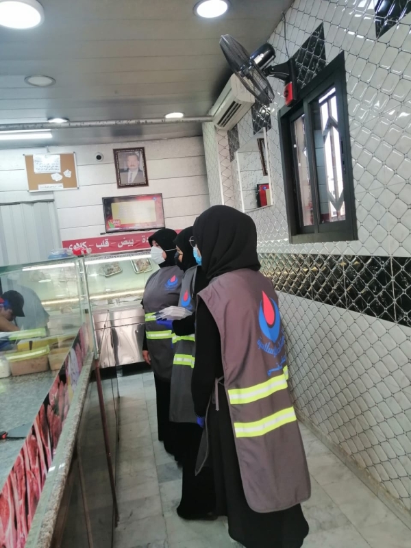 ٢- حملة تعقيم وتوعية شملت عدد من المحلات التجارية ومداخل الأبنية السكنية.