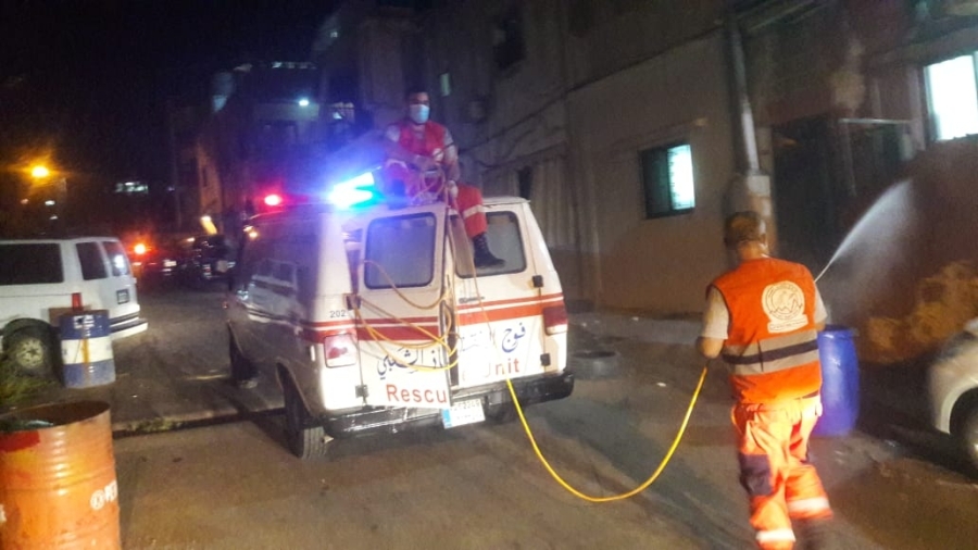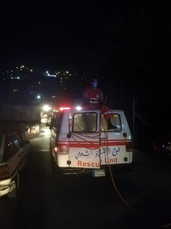 فوج الانقاذ الشعبي يعقم منطقة الفيلات بعد ثبوت ٨ حالات كورونا