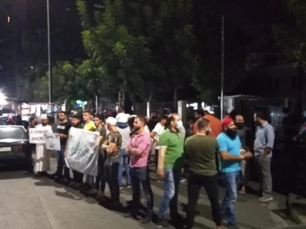نفذ عدد من ابناء مدينة صيدا والشباب الملتزم اعتصاما عند ساحة النجمة في صيدا استنكارا ورفضا للاساءة للنبي محمد حيث رفعوا لافتات كتب عليها الا رسول الله واخرى تندد بالرئيس الفرنسي وتنعته بالمجرم وكانت كلمة باسم المعتصمين القاها الشيخ عثمان حنينة عبر فيها عن رفضه وادانته التعرض والاساءة لرمز الدين الاسلامي النبي محمد .