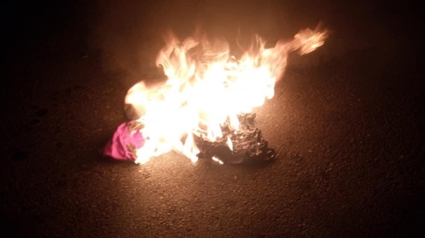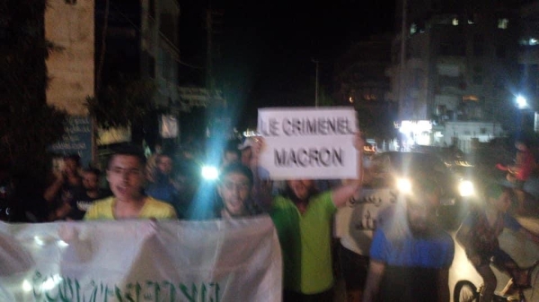 بعد ذلك تم احراق العلم الفرنسي في رسالة احتجاج وادانة .