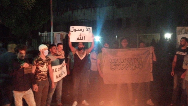 اعتصام ومسيرة وحرق العلم الفرنسي تنديدا بالاساءة للنبي محمد