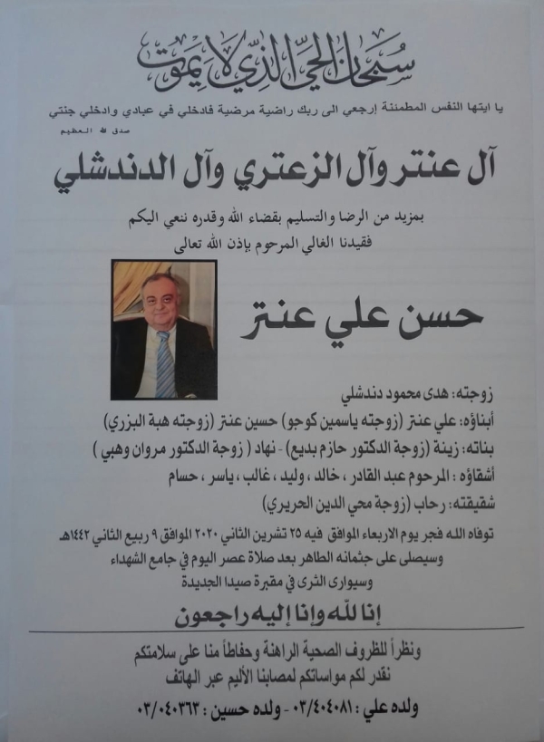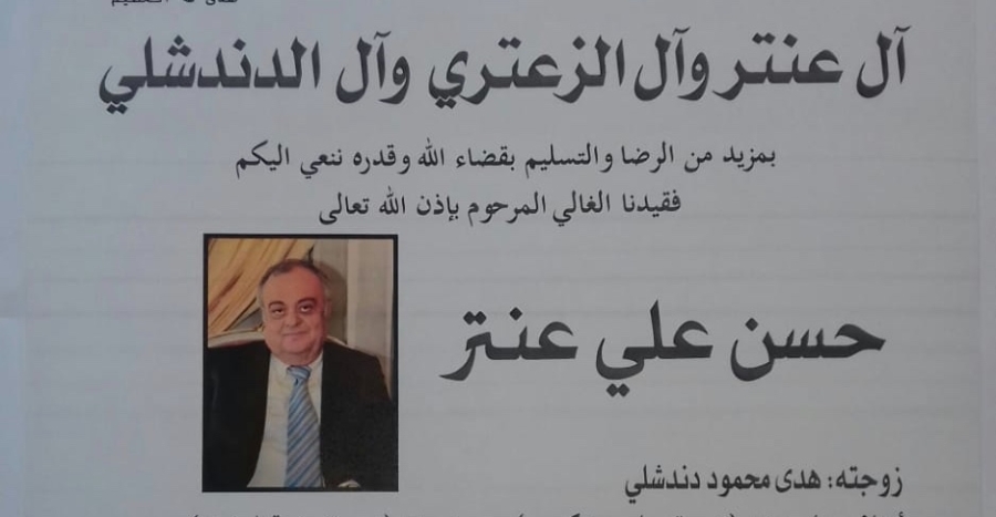 شكر وعرفان لكل من شارك في عزاء والدة القاضي زاهر حمادة