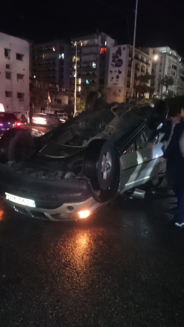 بالصور ... انقلاب رانج عند تقاطع إيليا، وسقوط 3 جرحى