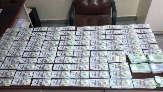 بتفتيشه والسيارة، عُثر على /64،200/ دولار أميركي مزيّفة، /44،120،000/ ليرة لبنانية، /450/ دولاراً أميركيّاً صحيحة، ومسدس حربي.
