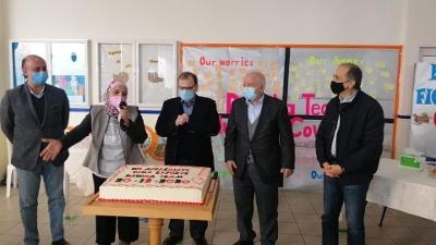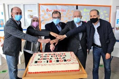 تلى ذلك قطع قالب حلوى تنويهًا بجهود الدكتور عبد الرحمن البزري على صعيد العمل التطوعي والإنساني أولاً، وجهود جمعية المقاصد في تأمين كل مستلزمات التعليم الحضوري للمعلمين ثانيًا، وجهود جميع أسرة الدوحة التعليمية في مسار التعلم المدمج ثالثًا. وتمّ التقاط الصور التذكارية وتوزيع هدية رمزية من وحي المناسبة على الحضور هذا وجال البزري برفقة رئيس الجمعية والأعضاء ومديرة المدرسة على الصفوف التي اعتمدت فيها الإدارة كافة الإجراءات الوقائية اللازمة من أجل بيئة مدرسية متعافية وصحية.