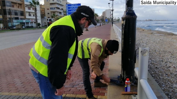 كما قامت فرق البلدية بالكشف على أعمدة الإنارة المزودة بالطاقة الشمسية على بوليفار صيدا البحري للتأكد من متانتها بمواجهة العاصفة وصيانة ما لحقق ببعضها من أضرار .