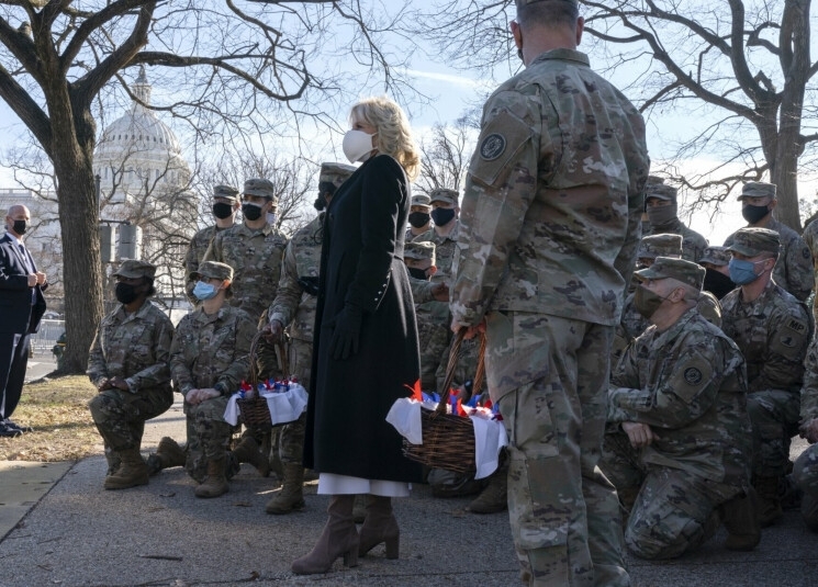 فاجأت السيدة الأولى لأميركا جيل بايدن، الحرس الوطنيّ في الكابيتول بسلال من البسكويت والشوكولاتة، شاكرة إياهم على الحفاظ على سلامتها وعائلتها خلال تنصيب زوجها جو بايدن.
