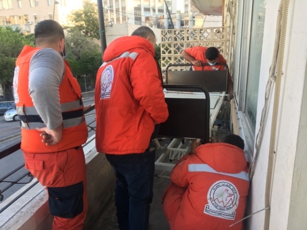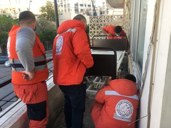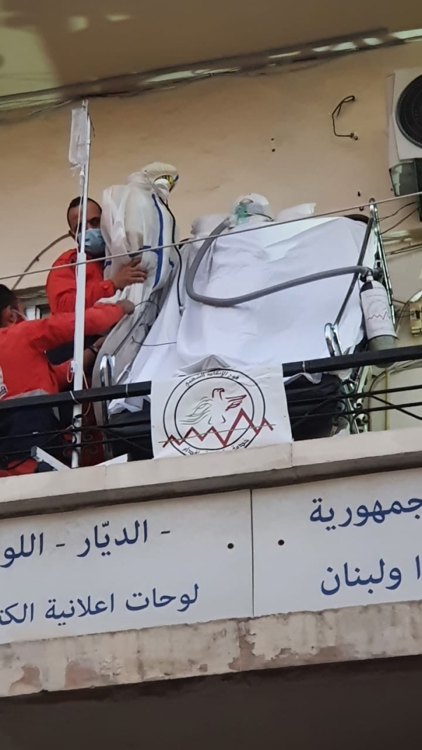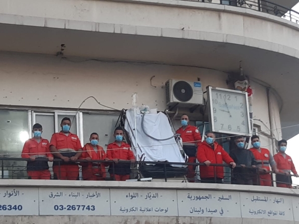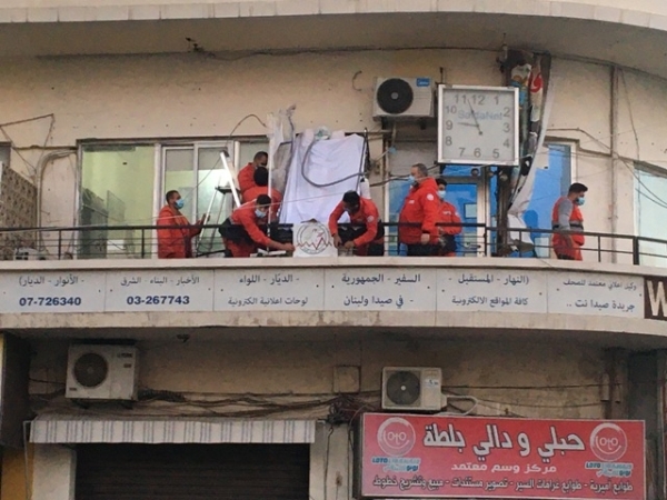 رفع مجسم لسرير عليه مريض افتراضي مصاب بكورونا في صيدا
