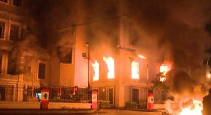متظاهرون أقدموا على إحراق مبنى بلدية طرابلس بعد رشقه بقنابل المولوتوف
