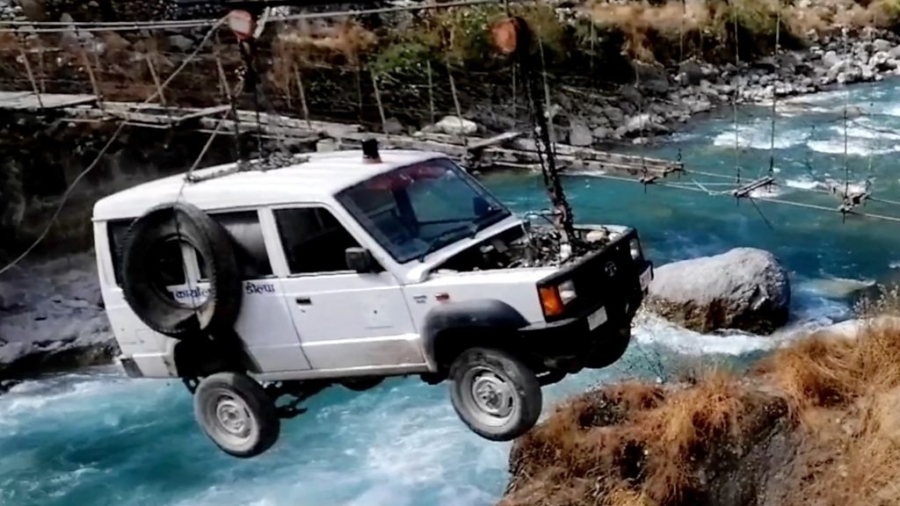 بالفيديو: أول سيارة إسعاف تنقل بالأسلاك فوق نهر بنيبال