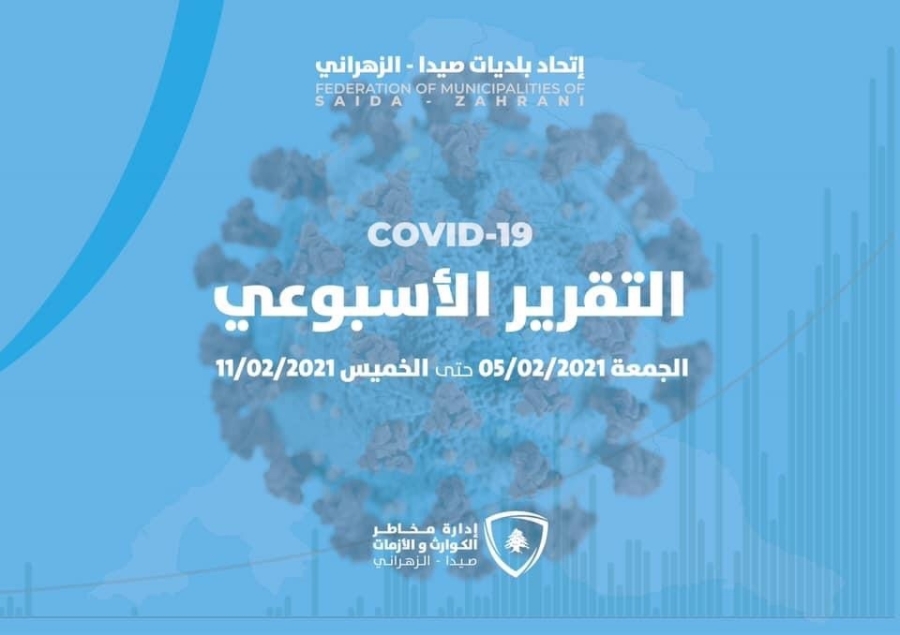 أصدرت غرفة عمليات إدارة مخاطر الكوارث والأزمات في إتحاد بلديات صيدا- الزهراني التقرير الأسبوعي لحالات الإنتشار على صعيد الإتحاد في الفترة الممتدة من الجمعة ٥ شباط و حتى الخميس ١١ شباط ٢٠٢١ حيث يتم متابعة ١٢٨٣ حالة نشطة.