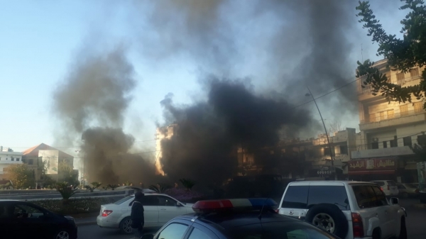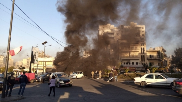 محتجون أشعلوا الاطارات في ساحة ايليا بصيدا