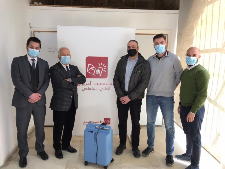 بتوجيهات من الرئيس سعد الحريري واستكمالا لحملة توزيع اجهزة ضخ اوكسجين في المناطق من جمعية بيروت للتنمية الاجتماعية سلم منسق عام تيار المستقبل في صيدا والجنوب مازن حشيشو جهاز ضخ اوكسجين لمستوصف الحريري الطبي الاجتماعي التابع لمؤسسة الحريري للتنمية البشرية المستدامة في حي رجال الاربعين في صيدا القديمة تسلمه المشرف على المستوصف مستشار النائب بهية الحريري للشؤون الصحية دكتور ناصر حمود ومدير المستوصف بلال الحريري وبحضور عضو مكتب منسقية الجنوب محمد الحريري ومنسق فرع التنمية الاجتماعية في المنسقية بهاء السبع أعين .