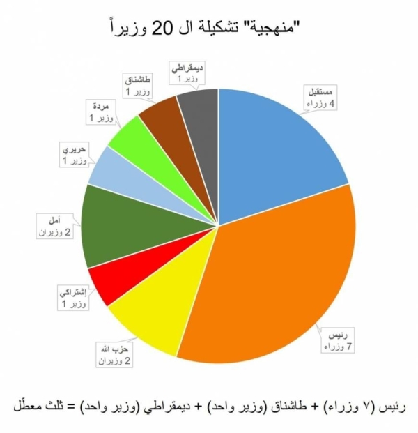 كما أن تصنيف الهوية الحزبية للوزراء في خانات الرسالة يطيح مبدأ حكومة "الاختصاصيين" لتحل مكانها حكومة سياسيين بالكامل.