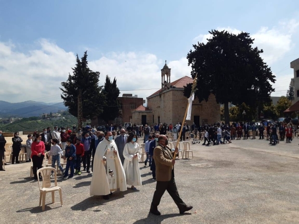 في بلدة لبعا - قضاء جزين ، بدا الاحتفال بالفصح هذا العام مميزاً حيث احتفلت رعية البلدة بالمناسبة بقداس اقيم في الهواء الطلق في باحة كنيسة السيدة وترأسه كاهن الرعية المونسنيور الياس الأسمر ، وشارك فيه جمع من ابناء البلدة ، يتقدمهم رئيس بلدية لبعا نائب رئيس اتحاد بلديات منطقة جزين فادي رومانوس ، وسط الالتزام باجراءات الوقاية من فيروس كورونا حيث ارتدى جميع المشاركين الكمامات الواقية ..