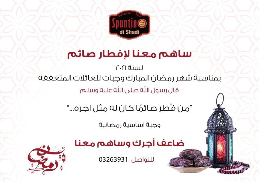 ثمن الوجبة الرمضانية: ٢٠،٠٠٠ ليرة لبنانية للشخص الواحد
