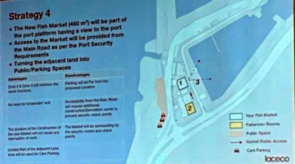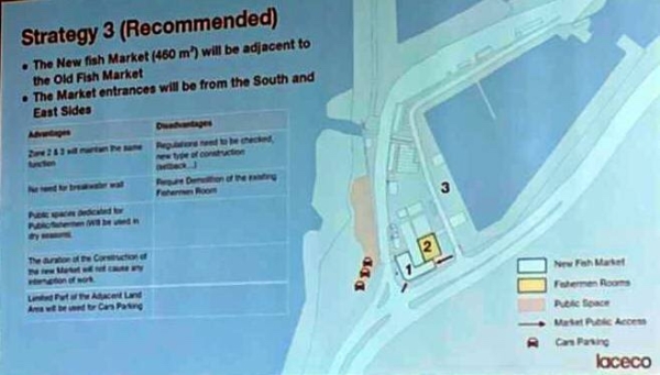 ولفت السعودي الى انه بعد طرح خيار تنفيذ المشروع مكان سوق السمك الحالي ، ارتأينا ان نستعين بجزء من خرائط ودراسات سبق وأنجزت لمشروع تحديث مرفأ الصيادين بدعم من بلدية برشلونة والذي لم ينفذ بعد بسبب عدم توافر الأموال اللازمة له . وتبين هذه الخرائط المساحات الموجودة في الموقع ، فوضعنا هذه الخرائط بتصرف استشاريي المشروع وقلنا لهم اختاروا الجزء المناسب لإقامة السوق فيه . وبناء عليه خرج المهندسون الاستشاريون بعدة مقترحات منها ان ينفذ في مكان السوق الحالي وان تكون الأشغال داخل ميناء الصيادين، وتم تشكيل لجنة مصغرة لمتابعة هذا الموضوع" .