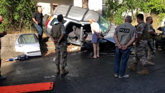 بالصور: قتيلان وجريحان في حادث سير على طريق عام صيدا جزين محلة عين المير