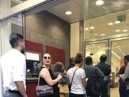 ازدحام أمام الصرافات الآلية في مختلف المناطق اللبنانية، وذلك بعد بيان مصرف لبنان بتعليق العمل بالتعميم رقم 151 الذي يسمح للمودعين بسحب اموالهم من حساباتهم بالدولار على سعر 3900 ليرة للدولار. وفي وقت سابق، أصدر مصرف لبنان بيانا وجهه للمصارف العاملة في لبنان، مشيرا الى أنه "بعد ان تبلغ مصرف لبنان القرار الإعدادي لمجلس شورى الدولة رقم٢١٣/٢٠٢١٢٠٢٠ نهار اليوم الواقع فيه ٢/٦/٢٠٢١، قرر المصرف المركزي تعليق العمل بالتعميم رقم ١٥١ الذي يسمح للمودعين بسحب اموالهم من حساباتهم بالدولار على سعر 3900ل.ل. للدولار استناداً لهذا القرار الإعدادي الصادر عن مجلس شورى".