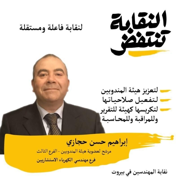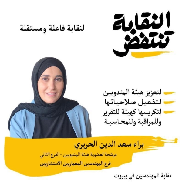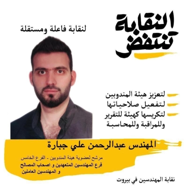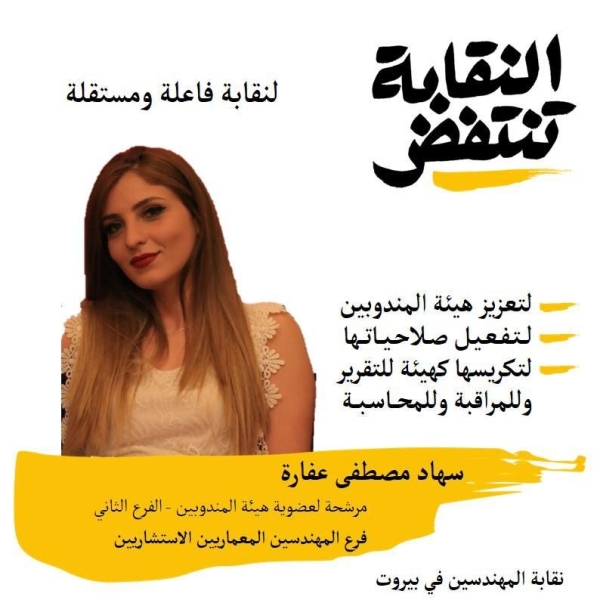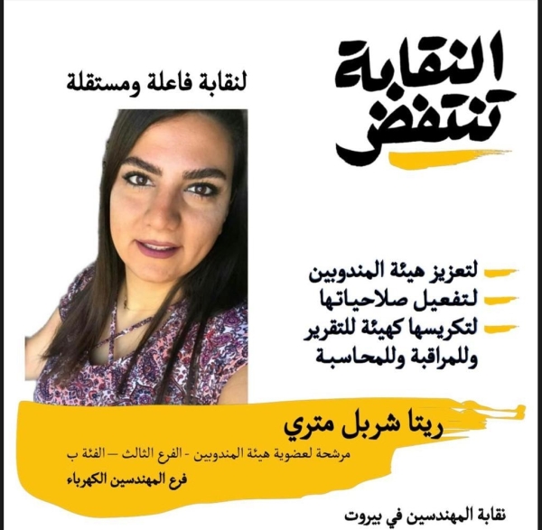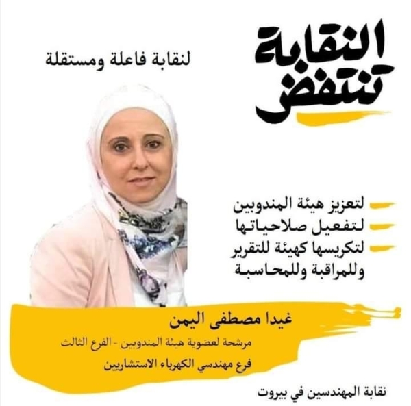 تهاني حارة من القلب إلى النقابة_تنتفض على الفوز الباهر في انتخابات نقابة المهندسين بمواجهة أطراف السلطة. إنجاز يعزز الأمل بالتغيير شرط توافر الإرادة والعمل الجدي ووحدة الموقف لدى قوى التغيير.