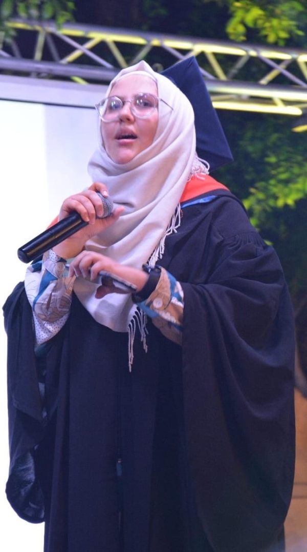 كلمة الخريجين ألقاها الجوال علي طيار و الرائدة منى جمعة الذين قدموا الشكر للأهل و القادة الذين كانوا دوما داعمين لهم خاصة في الظروف الصعبة التي مرت خلال العام.