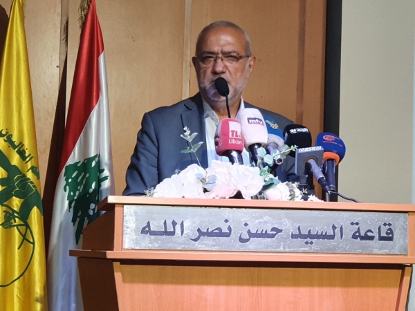 واضاف نقول لهذا العالم وللفساد في الداخل ان لبنان لن يسقط لانه اذا انهار لبنان ستنهار مصالحكم ومصالح حلفائكم وسيصل الوضع الى ما لا تحمد عقباه قبل ان تصلوا الى المقاومة والى سلاحها والى اهدافكم الرخيصة التي تريدون ان يبقى لبنان ضعيفا، وحزب الله لن يترك لبنان ضعيفا.