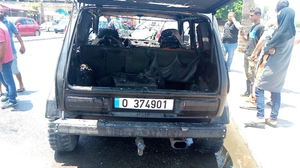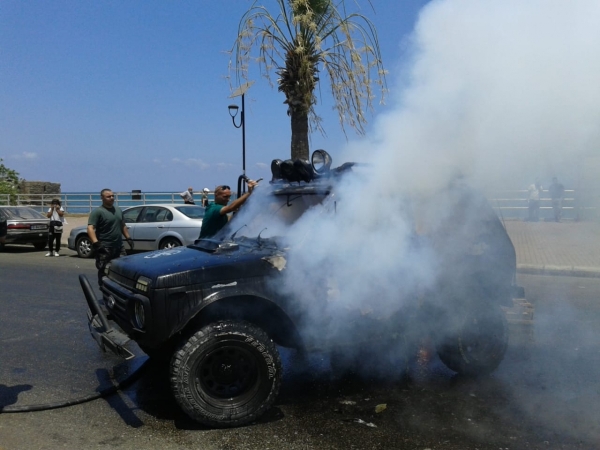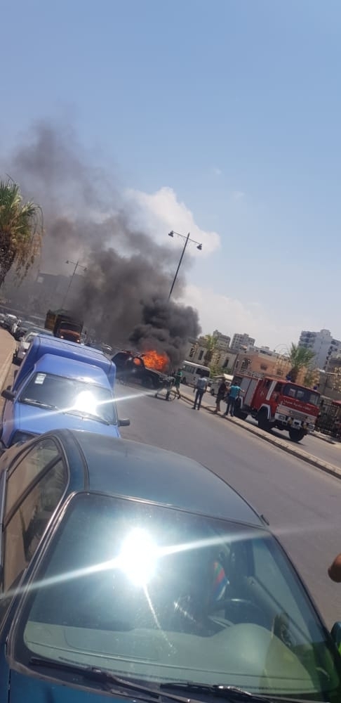 سجل عند الكورنيش البحري مقابل مركز اطفاء بلدية صيدا احتراق سيارة من نوع جيب لادا تحمل الرقم 0374901 وبحسب شهود عيان فقد قام صاحبها ويدعى ع . ف بركنها وسط الطريق ورمي مادة البنزين بداخلها ما ادى الى اشتعالها وعلى الفور هرعت فرق اطفاء بلدية صيدا الى المكان وعملت على إخماد حريق السيارة وتبريدها ومن ثم دفعها الى جانب الطريق .