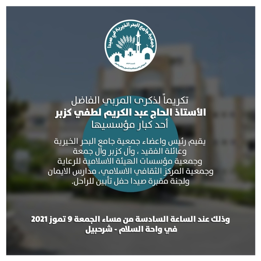 تكريماً لذكرى أحد كبار مؤسسيها المربي الفاضل الأستاذ الحاج عبد الكريم لطفي كزبر
