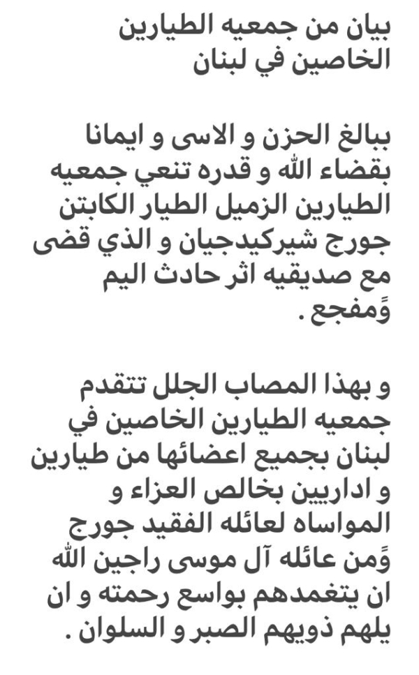 جمعية الطيارين الخاصين تنعي جورج شيركيدجيان