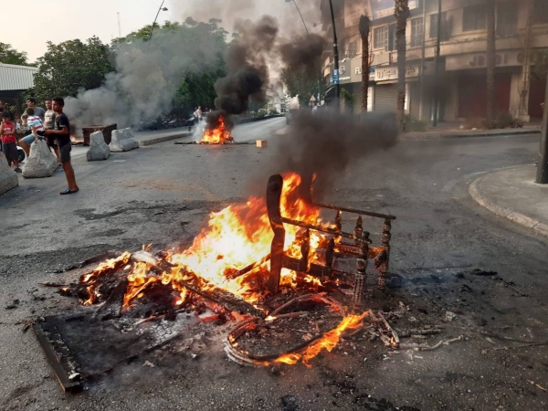 واثر اعلان اصحاب المولدات ان الكميات المتبقية من المازوت في خزاناتهم لم تعد تكفي الا لليلة واحدة او اثنتين بأحسن الأحوال، وعشية انطفائها كليا، خرج عشرات الشبان الغاضبين من ابناء صيدا القديمة الى شارع رياض الصلح واغلقوا الطريق الرئيسي في محلة البوابة الفوقا بالاطارات المشتعلة وحاويات النفايات وما تبقى من اثاث خشبي، معبرين عن سخطهم الشديد على الأوضاع التي وصلت اليها البلد ومطالبين المسؤولين بتأمين الكهرباء والمازوت للمدينة لأنه حق للناس على دولتهم الغائبة والقاصرة عن تأمين ابسط مقومات الحياة لمواطنيها، فلم يعودوا قادرين على الحصول على الدواء والغذاء بالحد الأدنى، ويذلون في طوابير البنزين وباتوا مهددين برغيفهم وصحة أطفالهم ولا من يسأل او يعي، على حد تعبير احد المحتجين!.