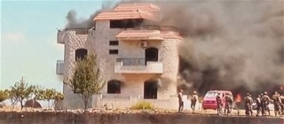 اضرام بعض الأهالي النار في منزل صاحب الأرض التي انفجر فيها الصهريج المحمل بالمحروقات.