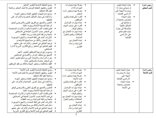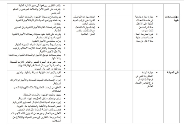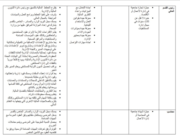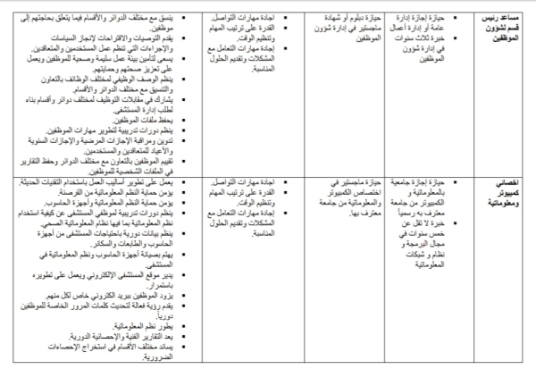 للمزيد من المعلومات عن الإختصاصات المطلوبة والشروط الواجب توافرها في من يتقدم لها يرجى الضغط على الرابط المرفق: