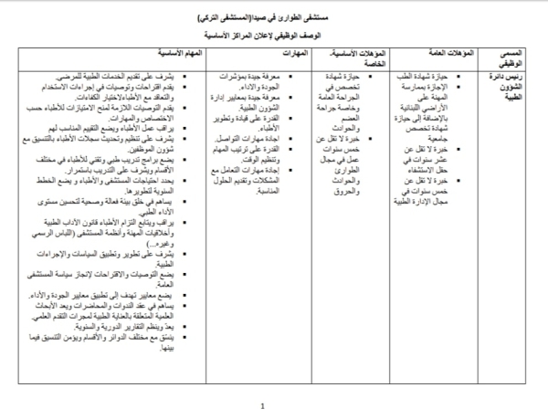 إعلان من مستشفى الطوارئ في صيدا الحكومي (المستشفى التركي) عن فتح باب التعاقد بدوام كامل
