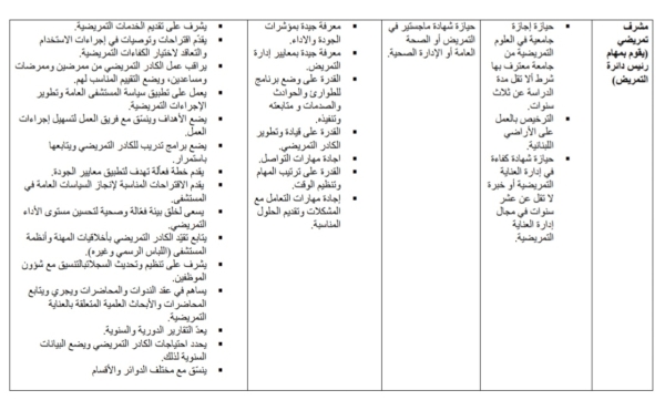 - مشرف تمريض ( يقوم بمهام رئيس دائرة التمريض )
