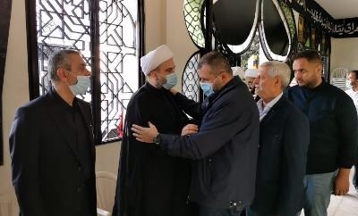 ومن ابرز المعزين : النائبان " الأستاذ علي بك عسيران والدكتور ميشال موسى " ، ممثل الرئيس نبيه بري مفتي صور وجبل عامل الشيخ حسن عبد الله ، ممثل النائب بهية الحريري الدكتور أسامة أرناؤوط ، الدكتور عبد الرحمن البزري ، مفتي صيدا واقضيتها الشيخ سليم سوسان ، مفتي مرجعيون الشيخ عبد الحسين عبد الله ، المفتي الشيخ محمد غالب عسيلي ،المفتي الشيخ احمد طالب ، رئيس المحاكم الشرعية الجعفرية في لبنان الشيخ محمد كنعان ، رئيس أساقفة صيدا ودير القمر للموارنة المطران مارون العمار ، متروبوليت صور وصيدا ومرجعيون للروم الأرثوذكس المطران الياس كفوري ، الأرشمندريت جهاد فرنسيس والأب سليمان وهبي ممثلين راعي ابرشية صيدا ودير القمر للروم الكاثوليك المطران ايلي حداد ، رئيس المركز الكاثوليكي للإعلام الأب عبدو أبو كسم ، رئيس الاتحاد العالمي لعلماء المقاومة الشيخ ماهر حمود ، رئيس تجمع العلماء المسلمين الشيخ غازي حنينة رئيس مجلس علماء فلسطين الشيخ محمد موعد على رأس وفد ولفيف من العلماء.