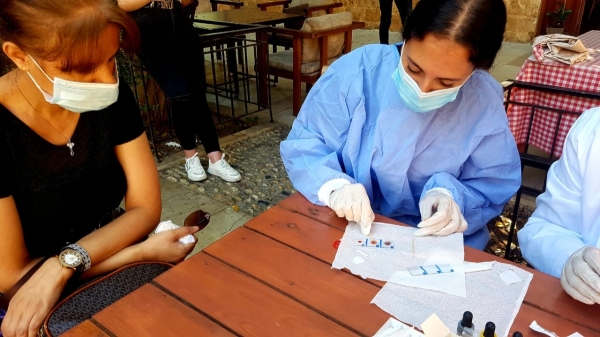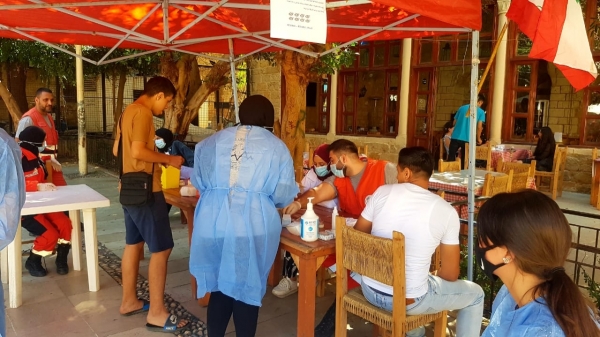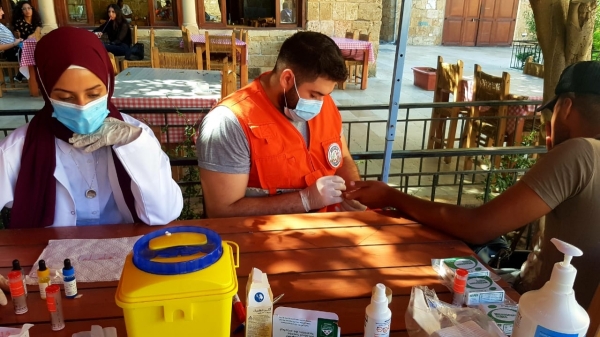 فوج الانقاذ الشعبي في مؤسسة معروف سعد يفحص فئة الدم للمواطنين في صيدا