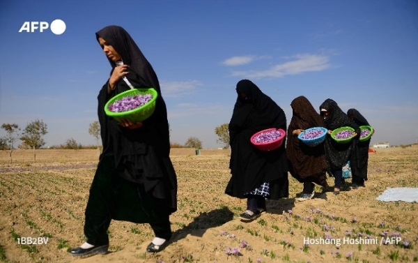 تتعهّد سيدة أعمال أفغانية توظّف مئات النساء في حقول الزعفران الدفاع عن حقوق العاملات