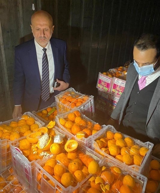 بالصورة مولوي يكشف على شحنة الليمون التي ضُبط بداخلها كبتاغون مُعدّ للتهريب