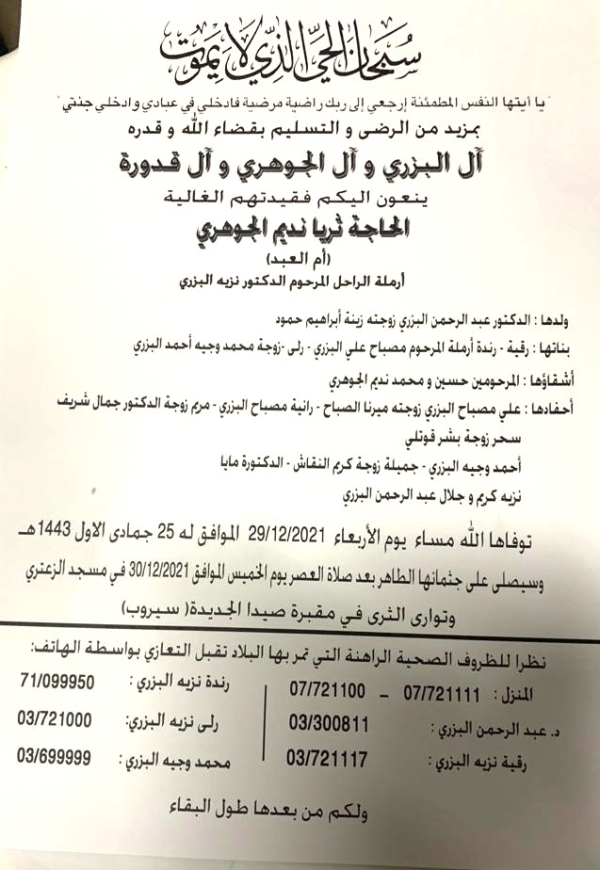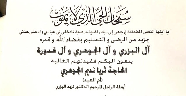 وفاة والدة الدكتور عبد الرحمن البزري -