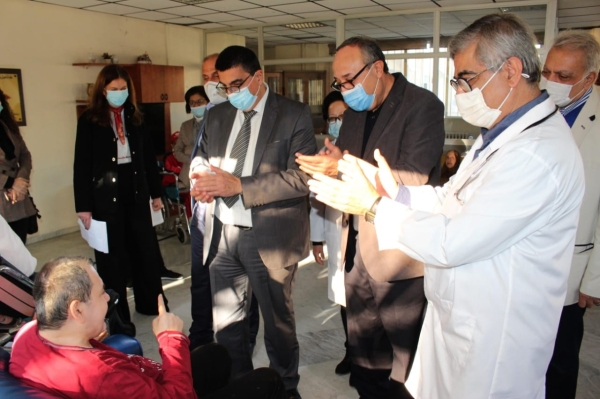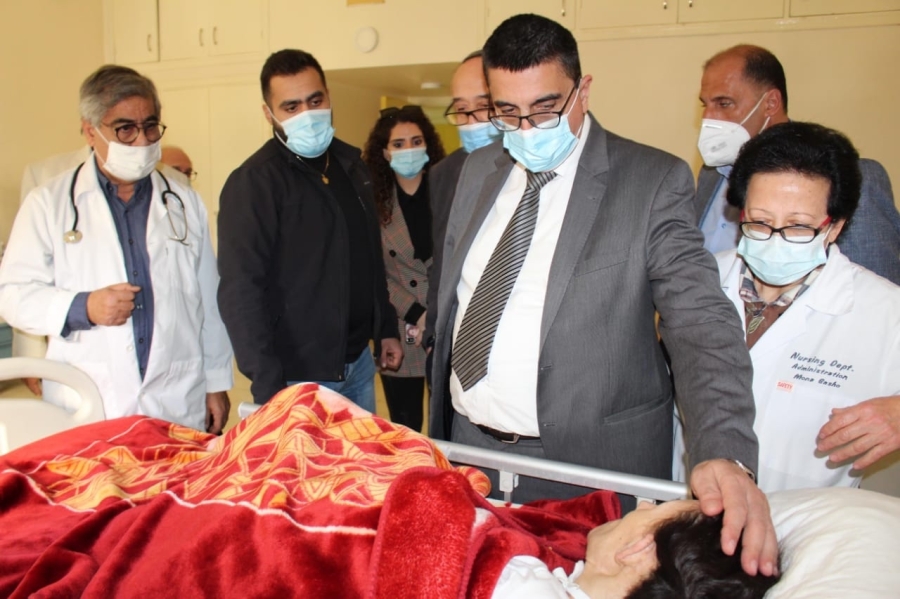 وكان في استقبال الوزير حجار رئيس الجمعية الأستاذ حسن صفدية وأعضاء الهيئة الإدارية "الحاج أحمد البابا والأستاذ مازن حشيشو والأستاذ عبد الحميد زويا والأستاذ يحيى البابا والحاج مصطفى عزام " وأعضاء الهيئة العامة " الأستاذ بشير السقا ، الدكتور صبحي الددا، الأستاذ باسم الزعتري"، ومديرة الجمعية السيدة عبير قبرصلي مملوك وطبيبا الدار " الدكتور محمد لطفي والدكتورة باسمة غادر" ومديرة التمريض السيدة منى باشو، وأمينة السر ومديرة العلاقات العامة والإعلام الأستاذة سنا الأسدي ومديرة المحاسبة الأستاذة هنا أبو علفا ".
