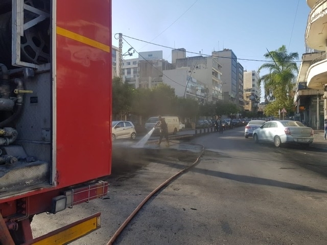 سرية اطفاء صيدا تشطف الأرض في ساحة النجمة لإزالة الآثار الناتجة عن حرق الدواليب خلال التحركات الاحتجاجية أمس، علماً أن أصحاب المحال التجارية في محيط ساحة النجمة اشتكوا من "الشحبار" الأسود