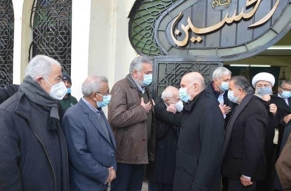 النائب علي عسيران، النائب السابق علاء ترو، زيد ضاهر عن حزب الله، بسام كجك عن حركة أمل، الشيخ ماهر حمود، رجل الأعمال مصطفى الدندشلي، علي الشريف رئيس جمعية تجار صيدا وضواحيها، أمين سر الساحة اللبنانية لـفصائل منظمة التحرير الفلسطينية وحركة "فتح" اللواء فتحي أبوالعردات، وفد من منظمة التحرير الفلسطينية، وفد من الجبهة الشعبية، أعضاء من بلدية صيدا، وحشد كبير من الأطباء والمحامين والمهندسين ومن محبي الراحل.