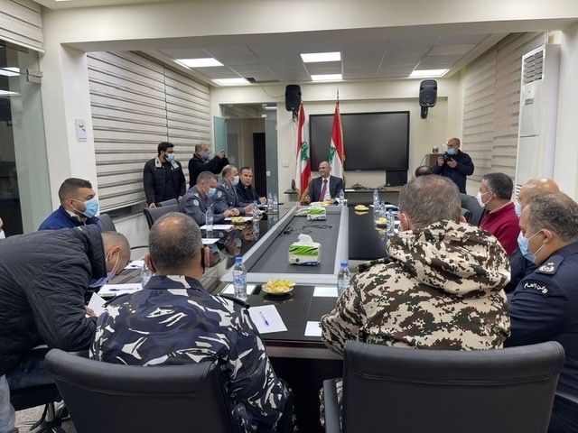 تم البحث في الوضع الامني عموما في الجنوب، بما فيه المخيمات الفلسطينية، ومتابعة الاجراءات الامنية اللازمة في هذا الصدد.