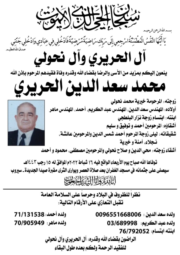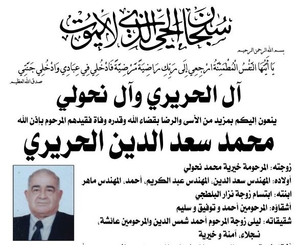وفاة محمد سعد الدين الحريري