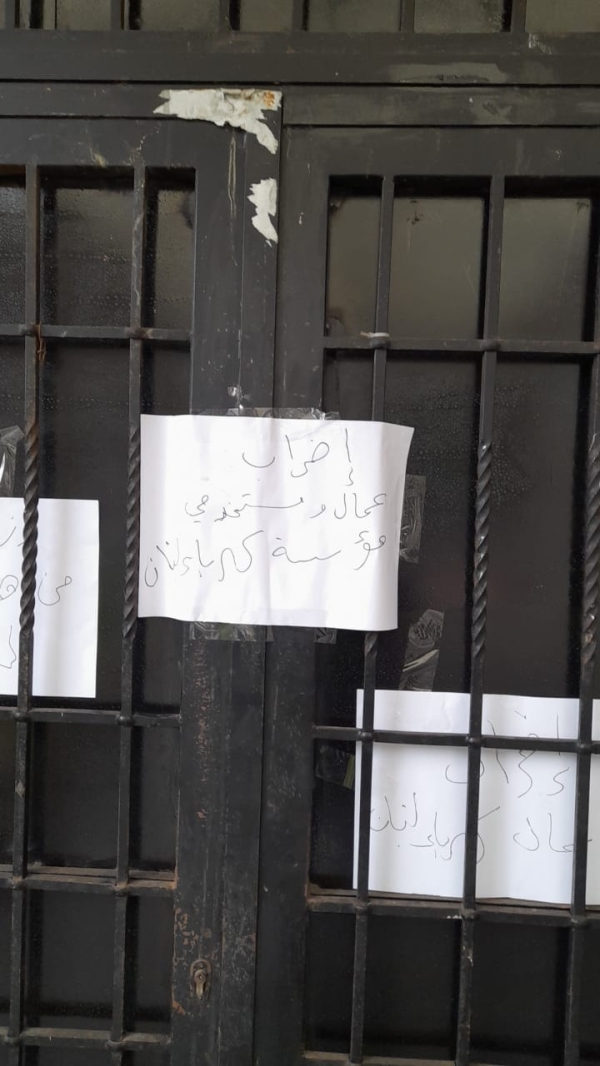 نفّذ العمال والمستخدمون في مؤسسة "كهرباء لبنان" فرع صيدا، اعتصامًا أمام مدخل المؤسسة، بعدما أعلنوا الاضراب وتوقفوا عن العمل التزاماً بقرار نقابتهم، وذلك رفضًا لتوسيع صلاحيات شركات مقدمي الخدمات لإدارة هذا القطاع، وللمطالبة باحتساب رواتب العمال والمستخدمين على سعر المنصة التي تطبق عليها رواتب العاملين في شركات مقدمي الخدمات، وتأمين التغطية الشاملة والاستشفائية للعمال والمستخدمين في مؤسسة كهرباء لبنان، وتأمين دفع الرواتب والمساعدة الاجتماعية وغيرها من صناديق المؤسسة نقداً.